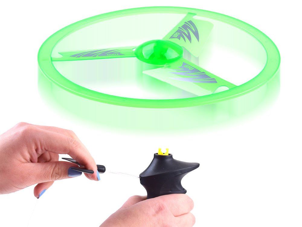 Nevjerojatan leteći disk, frizbi, leteći ufo za igru u parku, u vrtu na otvorenom. Igračka na povlačenje i svjetlosni efekti osigurat će puno kretanja i zabave. Izvrsni disk za igru u parku i na plaži. Leteći tanjur je najbolji način kretanja na otvorenom. Igračka pruža senzacionalne svjetlosne efekte tijekom večernje igre zahvaljujući priloženim baterijama koje osvjetljavaju LED diode smještene u ploči.