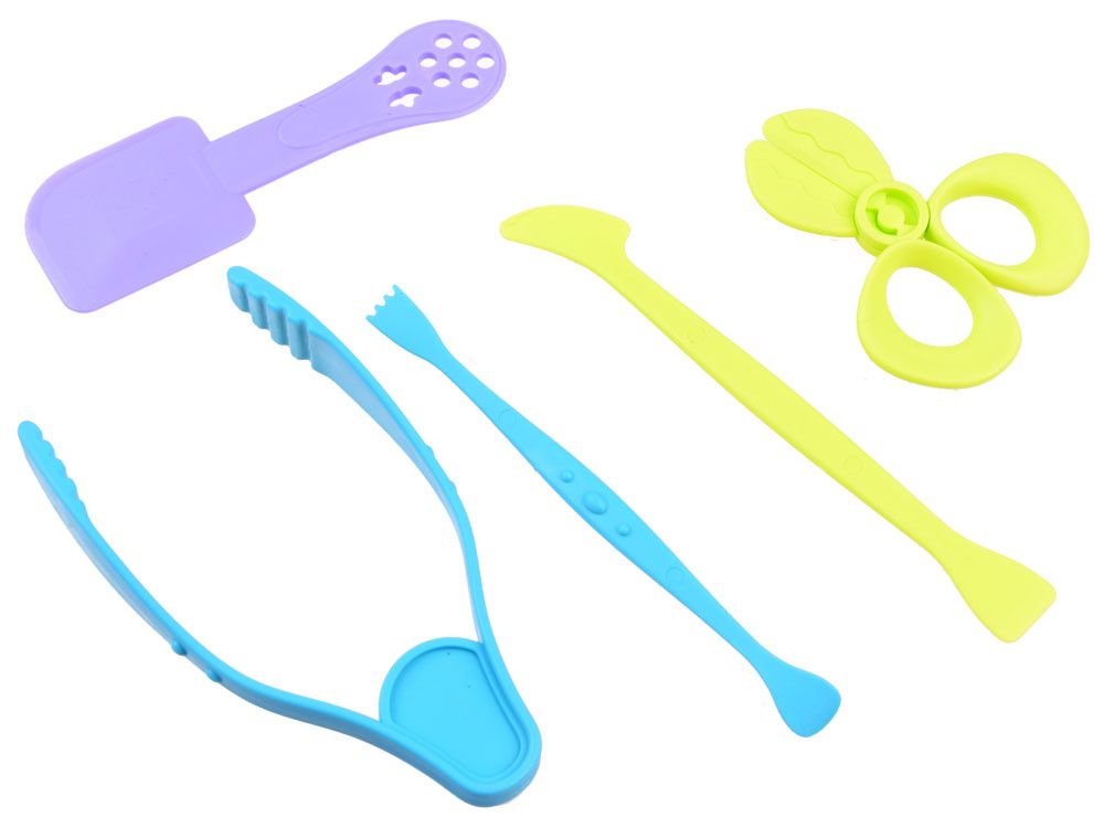 - 5 posuda s plastičnom masom (žuta, smeđa, ružičasta, crvena, zelena)