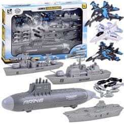 Set aviona, vojnih brodova i podmornice, koje mali vojnik posjeduje, je neophodna oprema za operacije na bojnom polju. Mali strateg će imati na raspolaganju pomorsku flotu i tri lovačka zrakoplova koji će čuvati područje iz zraka. Set je u cijelosti izrađen od plastike u odgovarajućim bojama i grafici. Osim toga, podmornica ima pogon na dva stražnja kotača, tako da igra može biti realističnija.