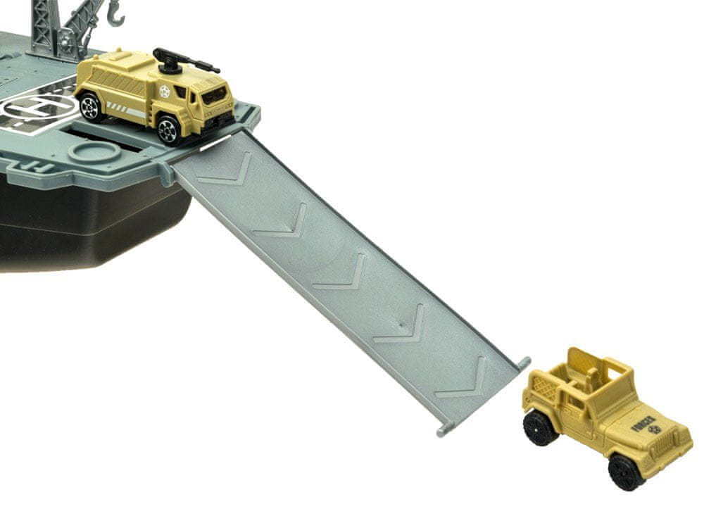 Ogromni nosač zrakoplova prava je poslastica za poznavatelje vojne tehnike. Nosač zrakoplova zajedno s posadom vojnih zrakoplova i vojnih vozila zasigurno će oduševiti svakog malog, a vjerojatno i velikog obožavatelja vojne tehnike. Nosač zrakoplova, baš kao i lovci i vojna vozila, izrađen je od plastike, vrlo je estetski i precizan. Unutra ima prostor za pohranu neiskorištenog pribora.