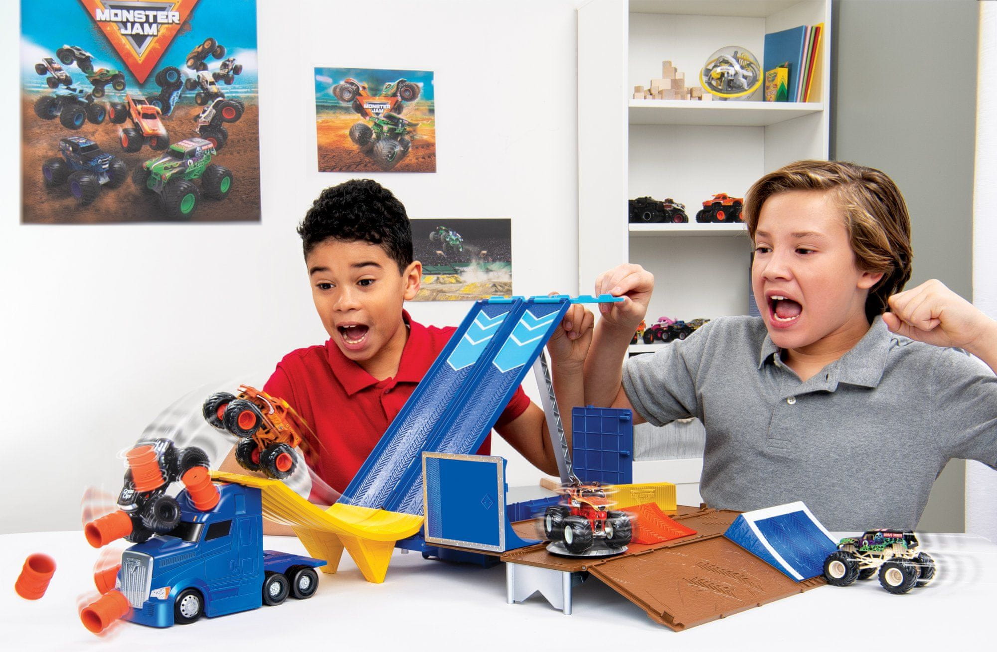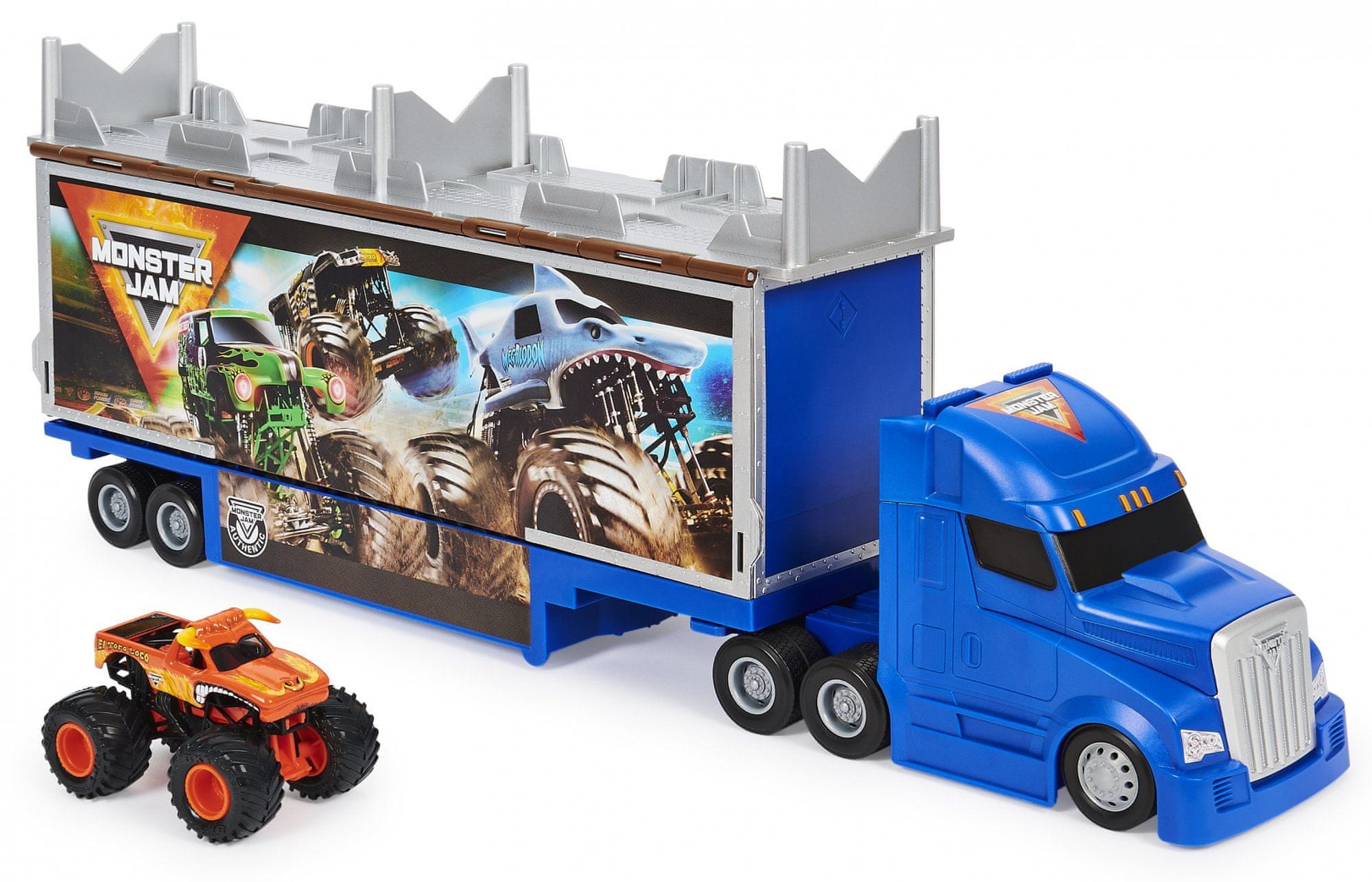 Igra 2u1 u obliku velikog kamiona sa polu-prikolicom se u trenu mijenja u trkalište. Veliki kamion se rastavlja, a ima prostor za 5 mosnter trucka 1:64. Paket uključuje jedan ekskluzivni automobil za metalne igračke El Toro Loco. Sav priloženi pribor tada se može pohraniti u kamion. Cijeli opis