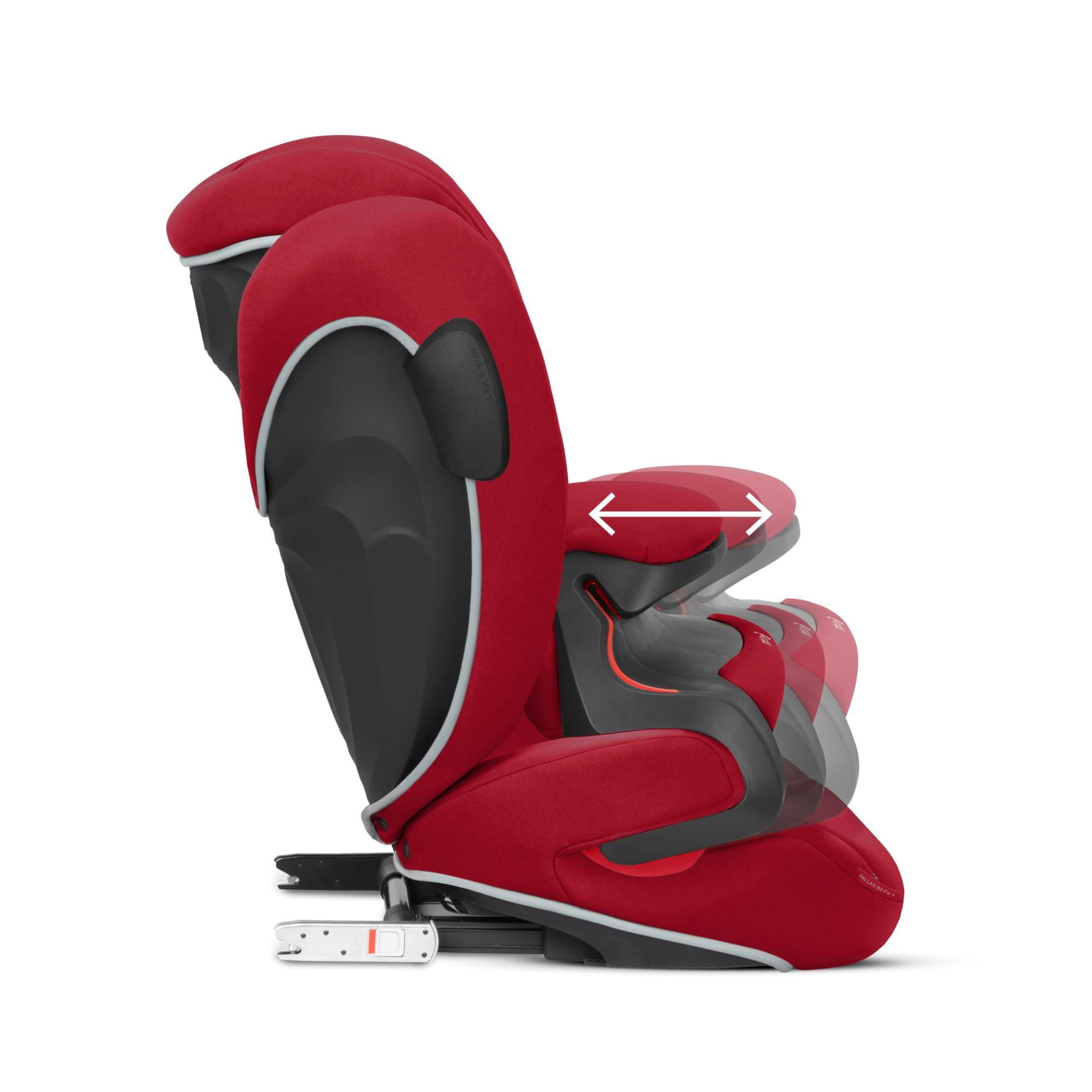 Autosjedalica CYBEX PALLAS B2-FIX+ ima podesivi sigurnosni brojač koji apsorbira udarnu silu, slično zračnim jastucima. Kad dijete dosegne masu od 15 kg, možete ukloniti mjerač i pretvoriti ga u sjedalo s visokim naslonom. Ugradnja sjedala u vozilo pomoću ISOFIX-a.