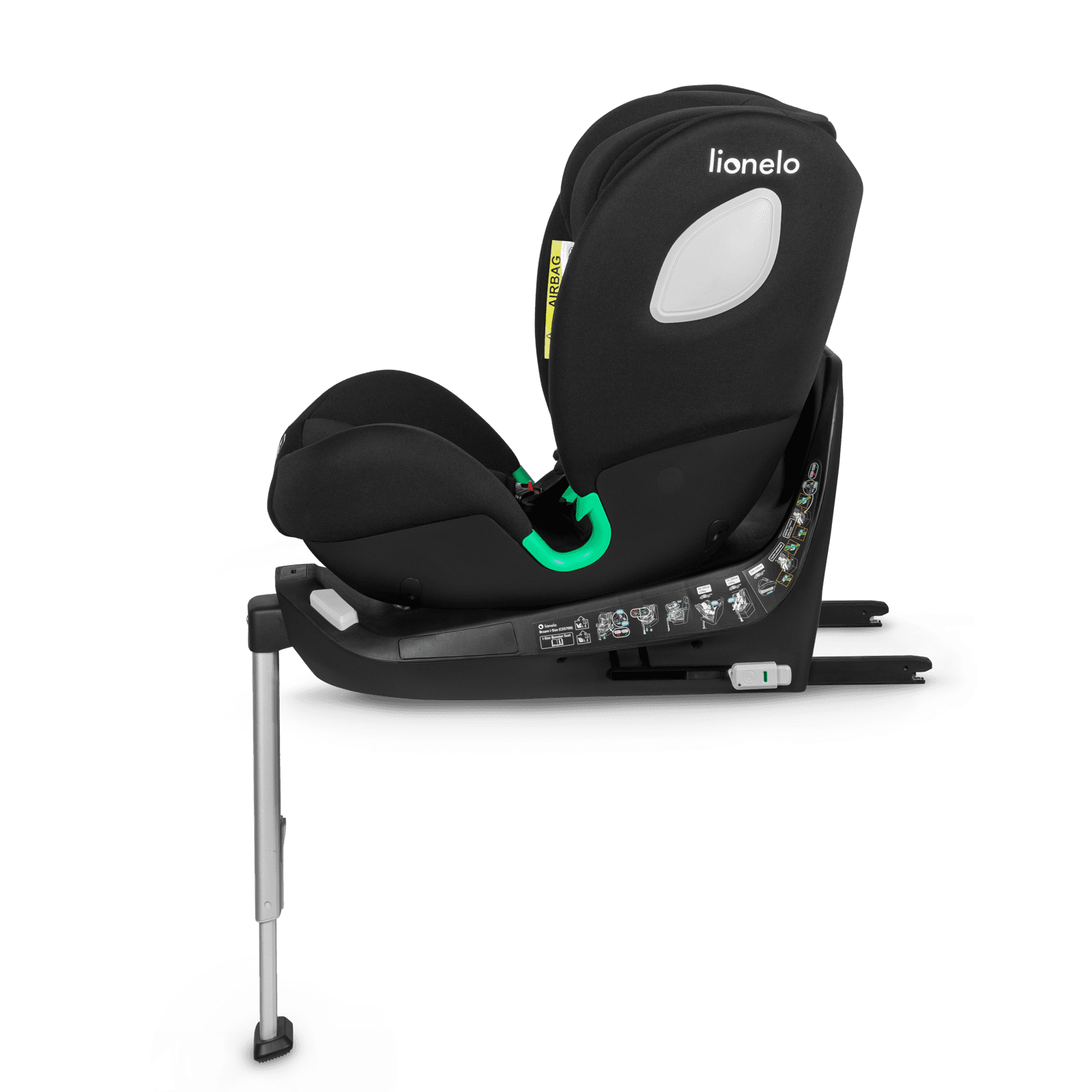 - Značajka funkcionira zahvaljujući dizajnu baze s okvirom protiv rotacije, pri čemu sjedalo nema dodira sa sjedalom automobila