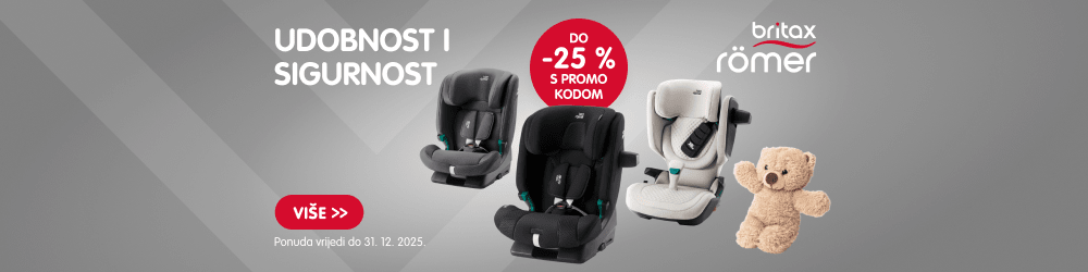 PROMO KODOVI – 25 % popusta na odabrane artikle Britax Römer s promo kodom BRITAX25HR25. Ponuda vrijedi do isteka zaliha ili najkasnije do 31. 12. 2025!