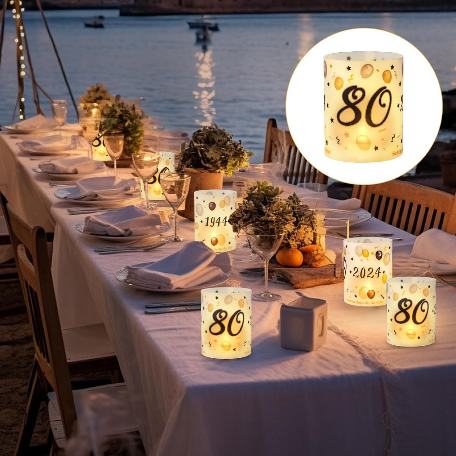 Nikcorp Dekorativni lampioni za 80. rođendan, set 12 kom, elegantna dekoracija stola s natpisom, za svijeće i lampice, bijeli