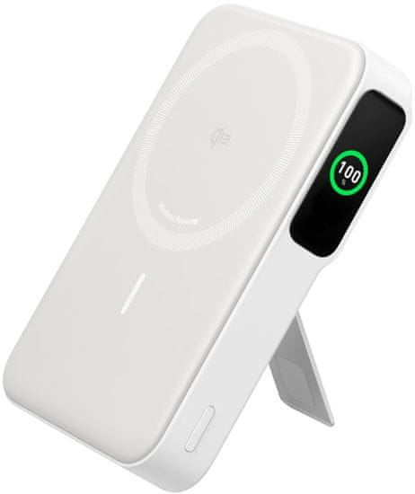 Upoznajte MagGo 633 10k powerbank u elegantnoj bijeloj boji: uživajte u brzom bežičnom punjenju s Qi2 certifikatom za svoje uređaje. Kompaktan, ali snažan, ima kapacitet od 10.000 mAh, što osigurava da vaši uređaji ostanu napunjeni tijekom putovanja.