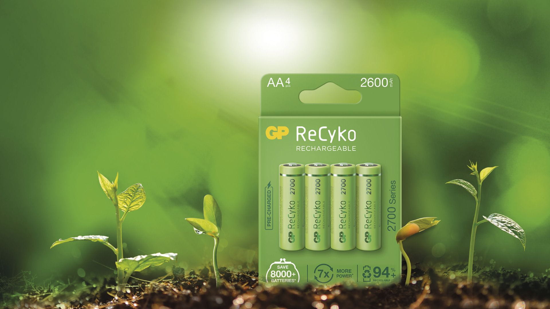 Osim što su ReCyko baterije potpuno pouzdane, zadovoljni ste i njihovim minimalnim utjecajem na okoliš. GP ReCyko baterije proizvedene su na ekološki prihvatljiv način. U proizvodnji se koriste već reciklirani izvori. Većina materijala od kojih su izrađene baterije također se mogu reciklirati. GP je također uzeo u obzir ekološku ambalažu od papira.