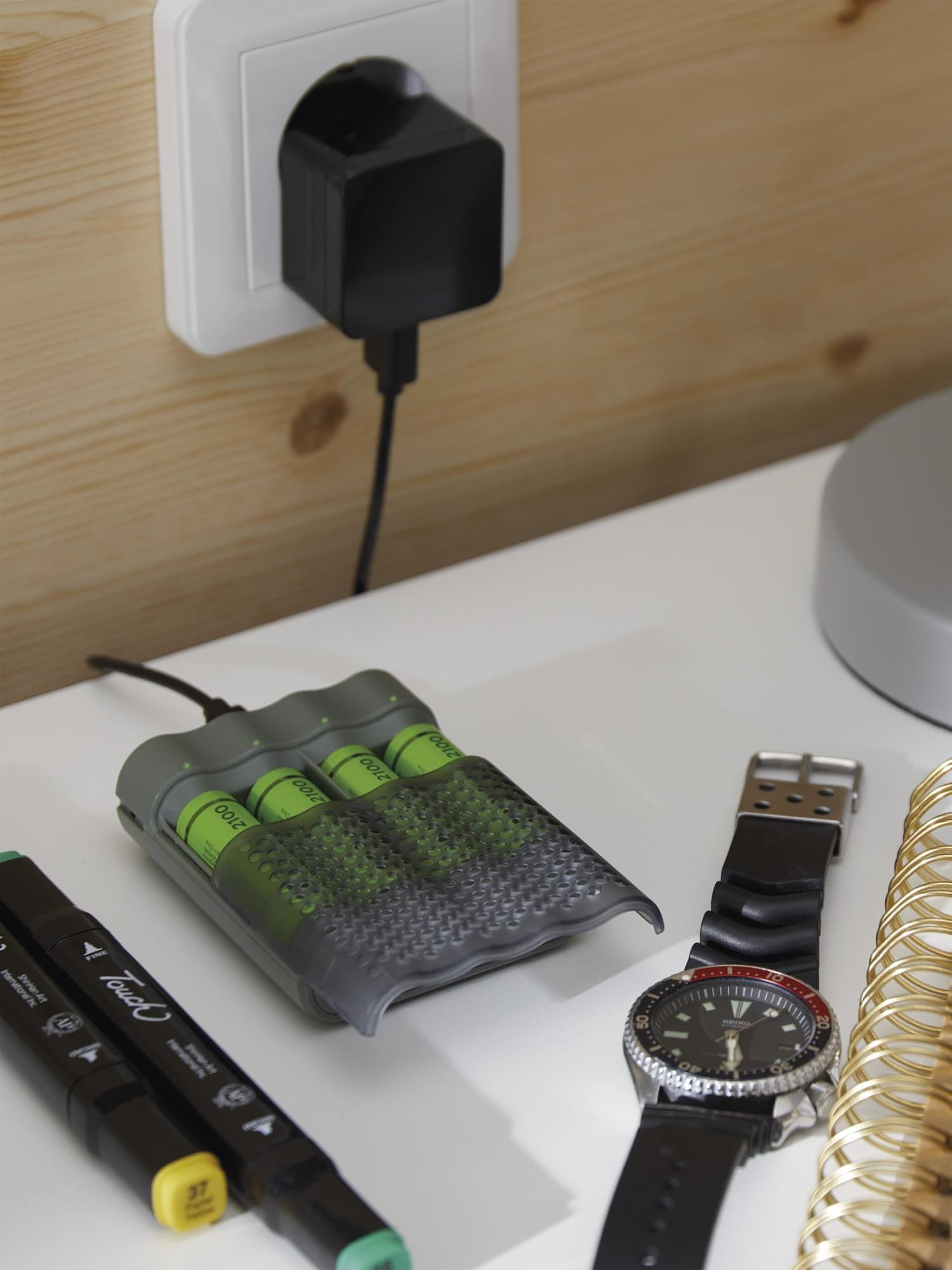 Brzo i sigurno punjenje. Punjačem GP Speed možete doseći maksimalni kapacitet svojih punjivih baterija za manje od 4 sata u slučaju njihovog potpunog pražnjenja. Punjač je opremljen funkcijom zahvaljujući kojoj svaku bateriju puni zasebno. Koliko i koje baterije punite, sa punjačem GP Speed ne igra nikakvu ulogu.