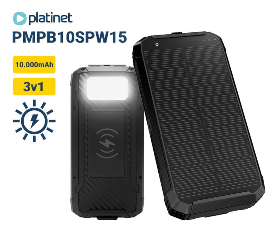 Platinet Solar Powerbank bežični punjač, 10.000 mAh, 1xUSB-C, LED svjetlo (PMPB10SPW15)