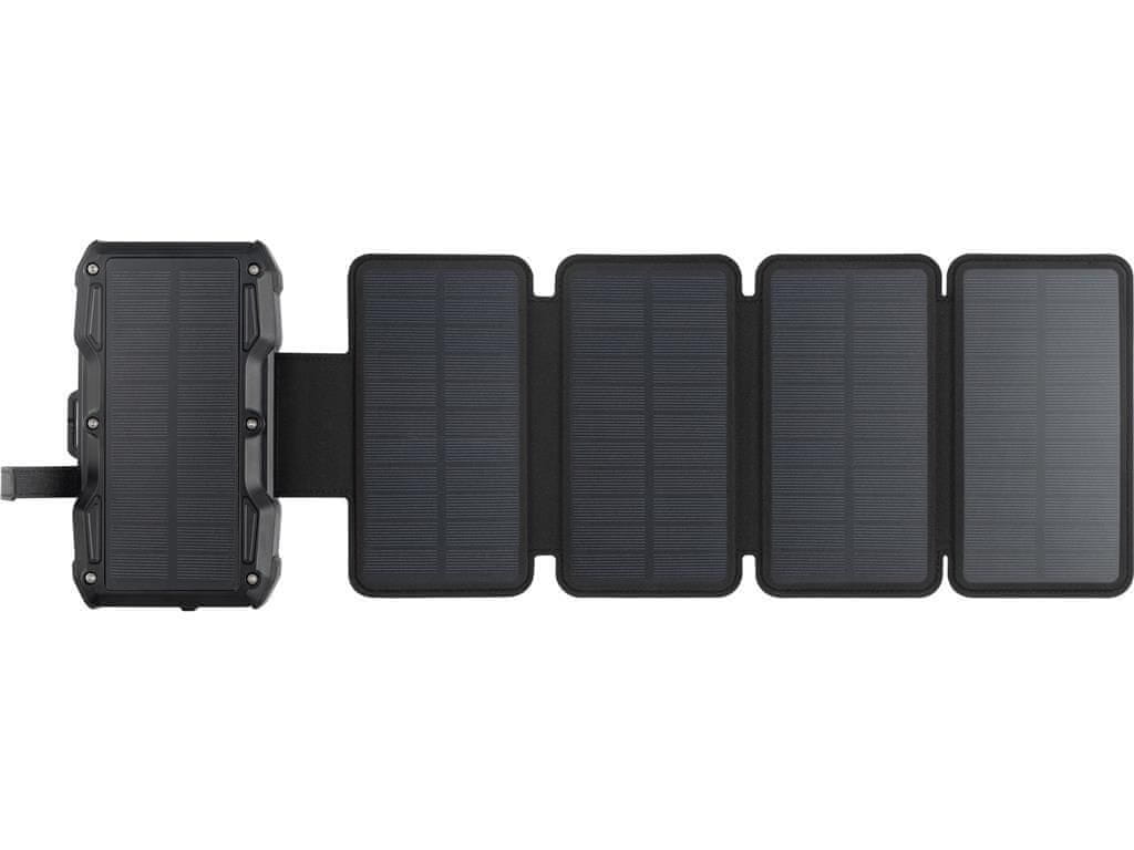 Solarna 5-panelna prijenosna baterija Powerbank 27000 je kombinacija visokoučinkovitog prijenosnog punjača kapaciteta 27000 mAh i sklopivog solarnog panela za brzo i učinkovito punjenje na sunčevoj svjetlosti. Tijekom planinarenja je možete objesiti na ruksak. Uvijek možete biti sigurni da imate napajanje za svoje mobilne uređaje, bez obzira koliko ste daleko od najbliže utičnice. Materijali su otporni na vodu i udarce.