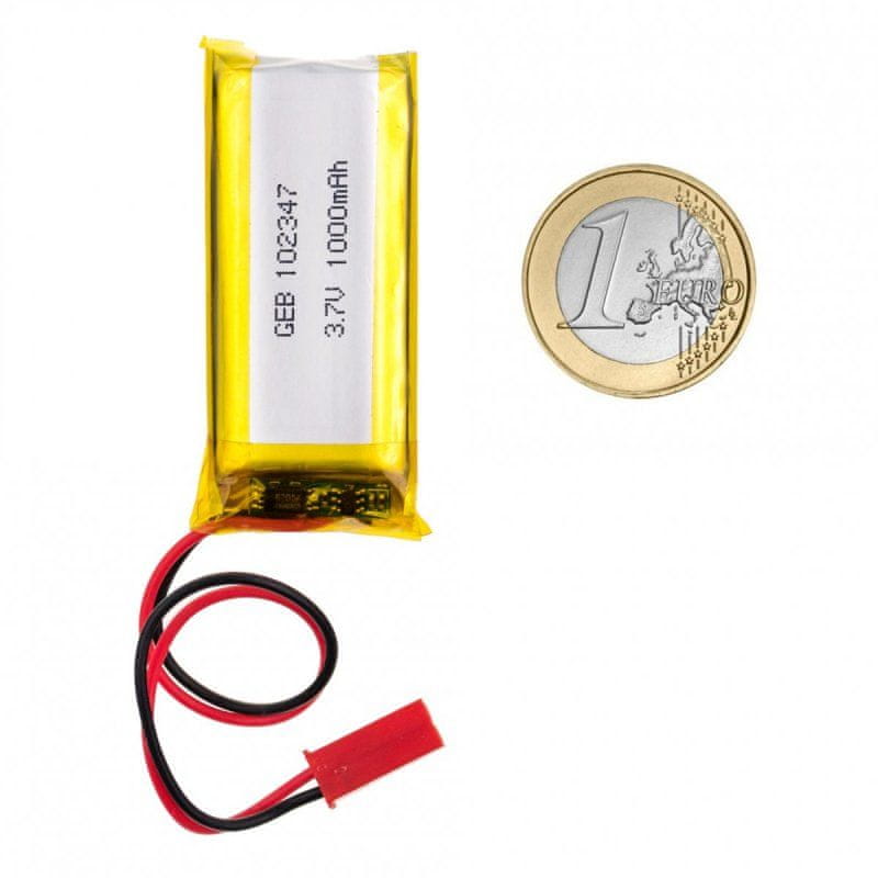 Vanjska punjiva litij 3.7V baterija s kapacitetom 1000mAh i BEC konektorom. Baterija je pogodna, na primjer, za bežične minikamere ili kamere module.