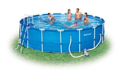 Nadzemni okrugli obiteljski vrtni bazen, od talijanske tvrtke Bestway.Bazeni su samonosni, dovoljno je samo napuhati gornji prsten i napuniti bazen vodom. Rastući stupac vode sam će izgraditi bazen.