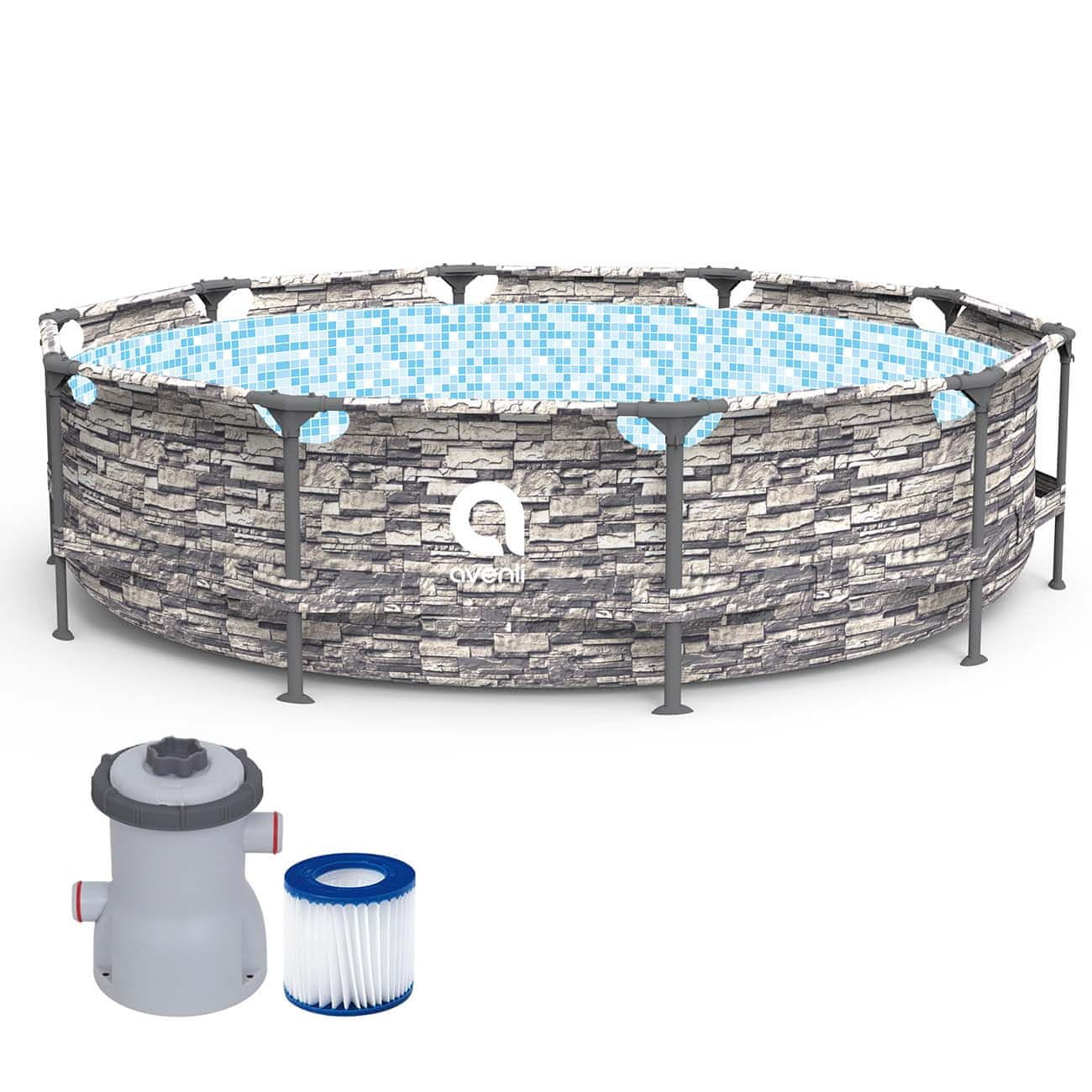 Frame Plus sivi bazen. 305×76cm. Kapacitet 4672l. Pumpa ukljucena. Cijeli opis