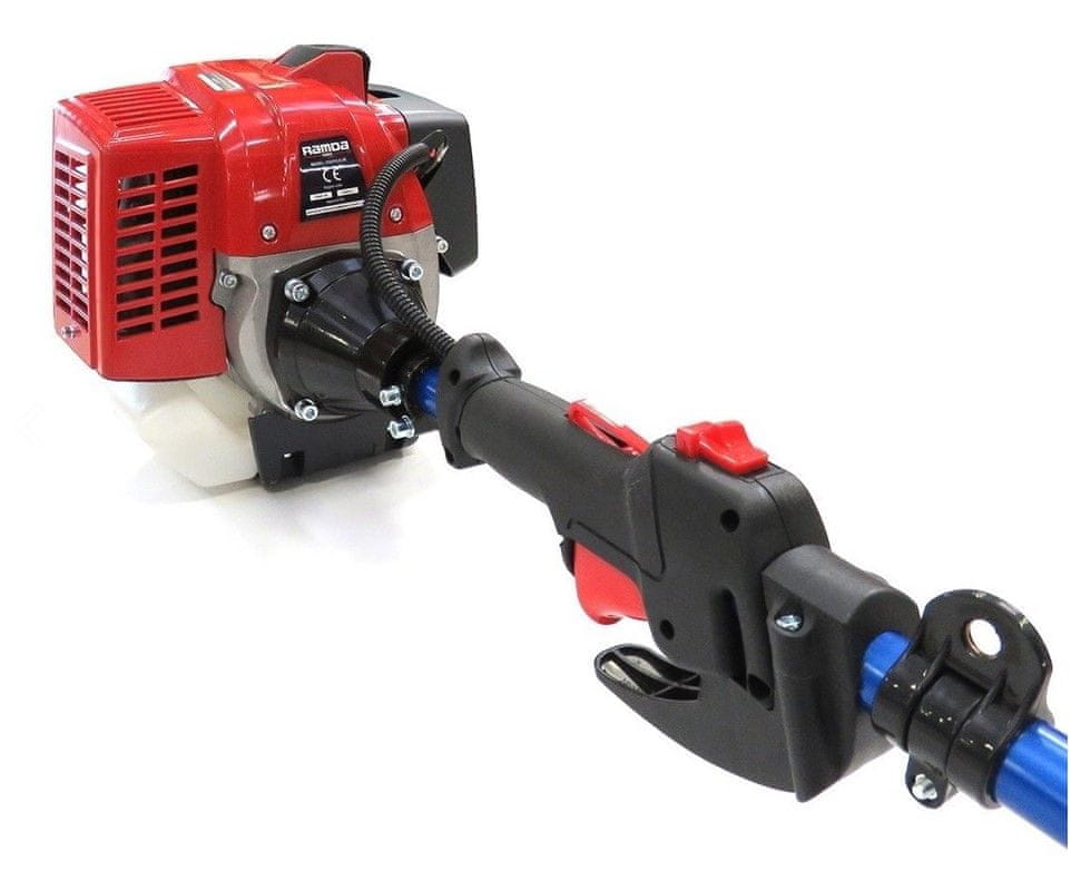 Poluprofesionalna motorna pila s ravnom podijeljenom osovinom i okruglom ručkom. Cijeli opis