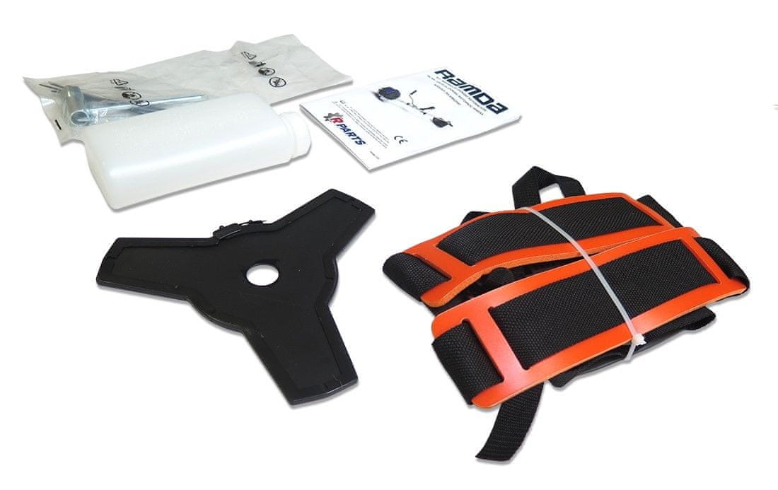 Poluprofesionalni motorni trimer RAMDA s ravnom rascjepnom osovinom i dvoručnom ručkom. Opremljena je 2-taktnim motorom volumena 52,8 ccm i snage 1,9 kW. Spremnik za vodu ima volumen od 0,92 litre. Uključuje 3T oštricu (širina rezanja 255 mm) i poluautomatsku najlonsku glavu (širina rezanja 450 mm). Težina je 9,0 kg s najlonskom glavom i 9,2 kg s nožem.