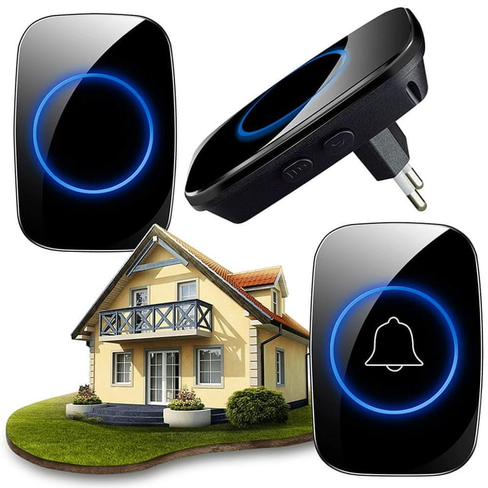 Moderno, bežično zvono. Opremljen odašiljačem (tipkom) s piezoelektričnim prekidačem koji ne zahtijeva žičano napajanje. Domet odašiljača je do 300 m na otvorenom prostoru, što mu omogućuje korištenje kao zvono na velikim parcelama. Odašiljač koristi radio komunikaciju za povezivanje sa zvonom na vratima, nije potrebno dodatno ožičenje. Tipka za zvono je vodootporna (IP44), tako da se može montirati izvan zgrade. Za napajanje samog zvona dovoljno ga je spojiti na utičnicu.