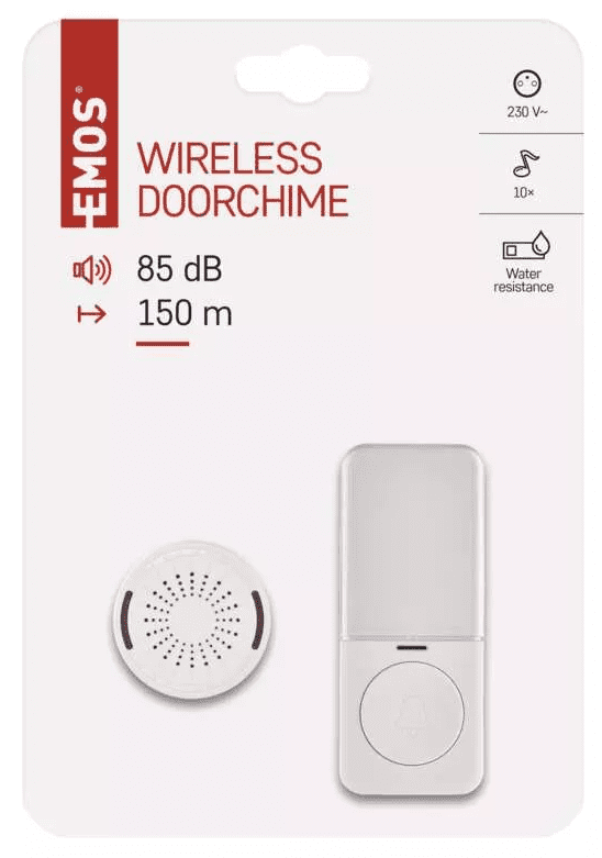 Emos P5734 je bežično zvono za vrata koje se može pohvaliti dometom tipki do 150 m, 10 melodija i pet razina glasnoće zvona.