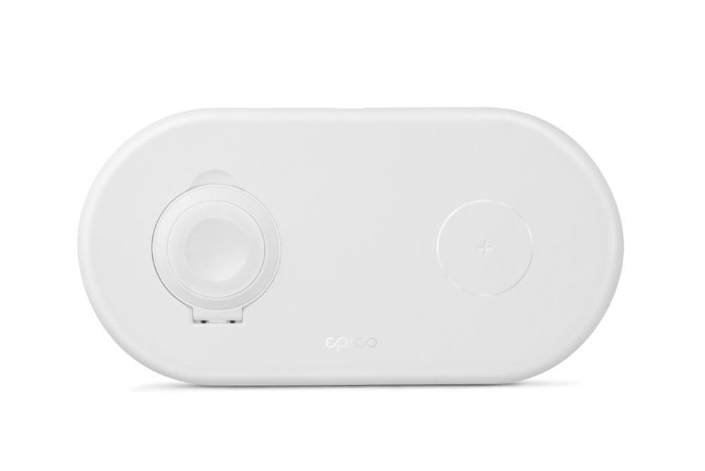 Dvostruki bežični punjač Epico bežični punjač za Apple Watch i iPhone s adapterom, bijeli (9915101100075) ima dvije indukcijske zavojnice – jednu od 5W za Apple Watch i jednu s brzim punjenjem za iPhone sa 7.5 /10/15 W**.