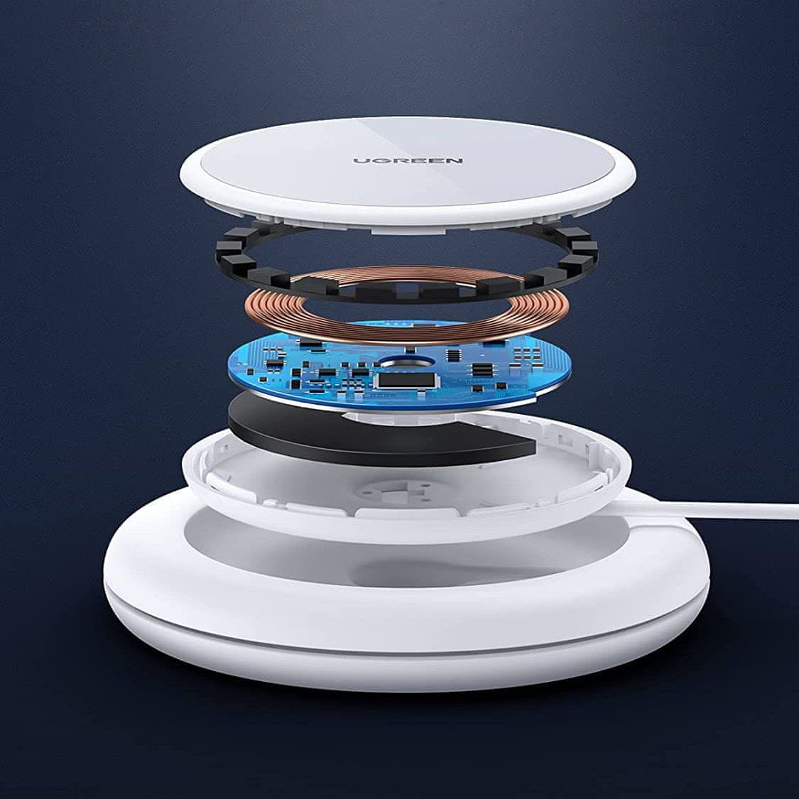Zahvaljujući Ugreen punjaču, možete puniti ne samo svoj telefon, već i slušalice i svu drugu opremu koja podržava induktivno punjenje. Magnetski vrh velika je pogodnost koja vam omogućuje da ga pričvrstite na elemente izrađene od metala. Zahvaljujući tome, zajamčena vam je veća stabilnost i nema opasnosti da se odvoji tijekom punjenja.Parametri: