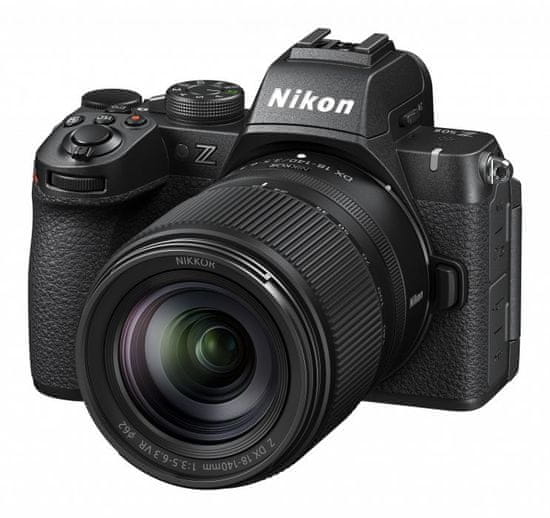 Fotoaparat Nikon Z50II krasi CMOS senzor, video snimanje u izuzetnoj 4K rezoluciji, EXPEED 7 procesor slike i kompaktno kućište. Objektiv NIKKOR Z DX 18–140mm f/3.5–6.3 VR pričvršćen je na fotoaparat.