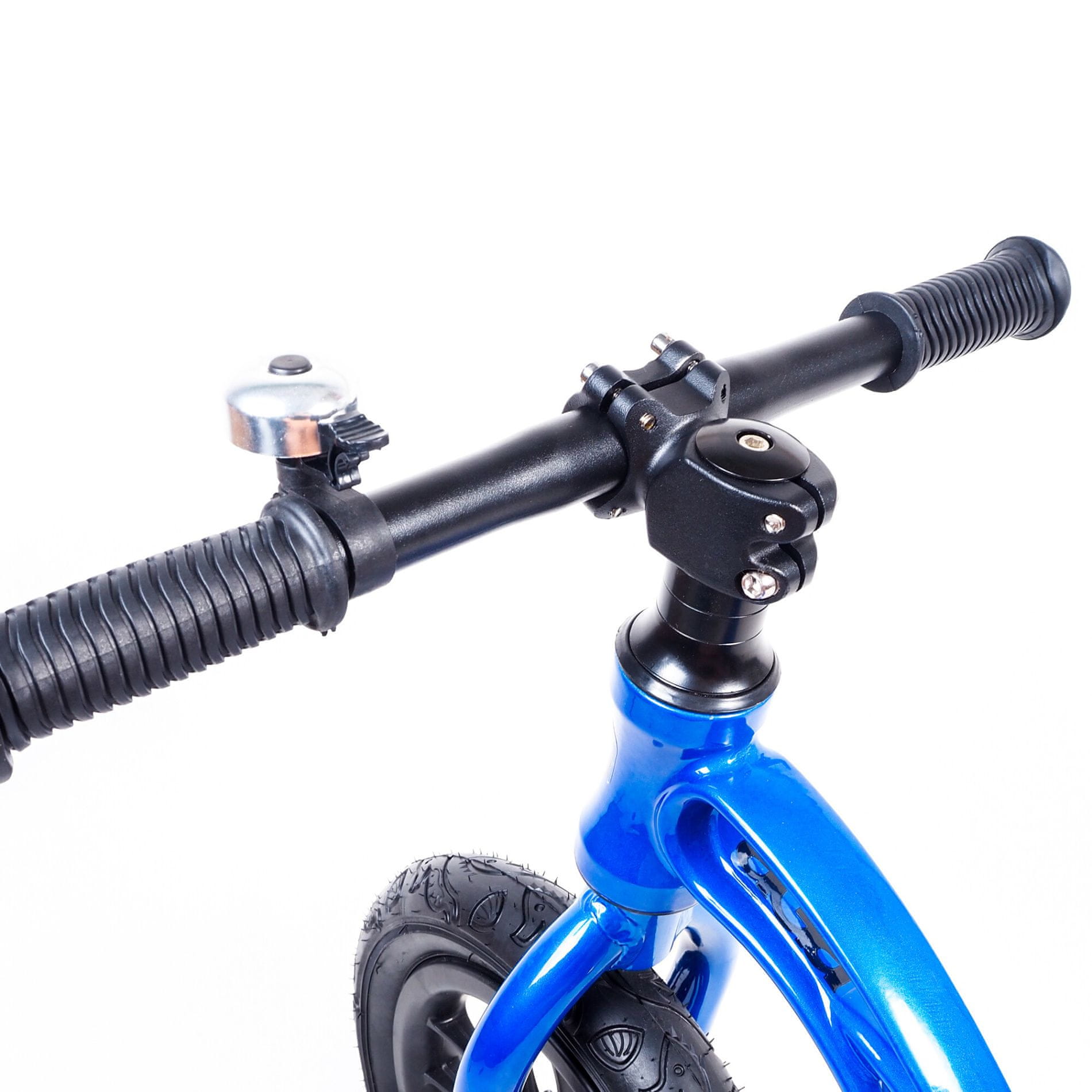 Guralica je opremljena zračnim gumama dimenzija 12"*2.125, koji pružaju glatku i udobnu vožnju čak i na neravnom terenu. Čelični naplatci dodaju robusnost i pouzdanost cijelom kotaču. Visina upravljača je fiksno postavljena na 50 cm, što je idealno za malu djecu kako bi lako mogla dosegnuti i upravljati svojim guralicom.