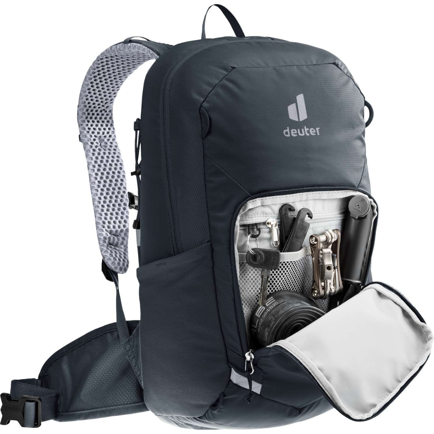 Deuter Bike I 16 kompaktan je, svestran i udoban biciklistički ruksak, savršen suputnik za svakodnevne biciklističke vožnje, kraće planinarske ture ili brze mikro avanture u prirodi. Dizajniran s naglaskom na udobnost, stabilnost i praktičnost, nudi 16 litara zapremnine, odličnu organizaciju i izdržljive materijale. Leđni sustav Airstripes s 3D mrežicom osigurava prozračivanje preko 80 % leđa, dok prsni remen i prozračni bočni oslonci omogućuju da ruksak ostane stabilan i na zahtjevnijim stazama.