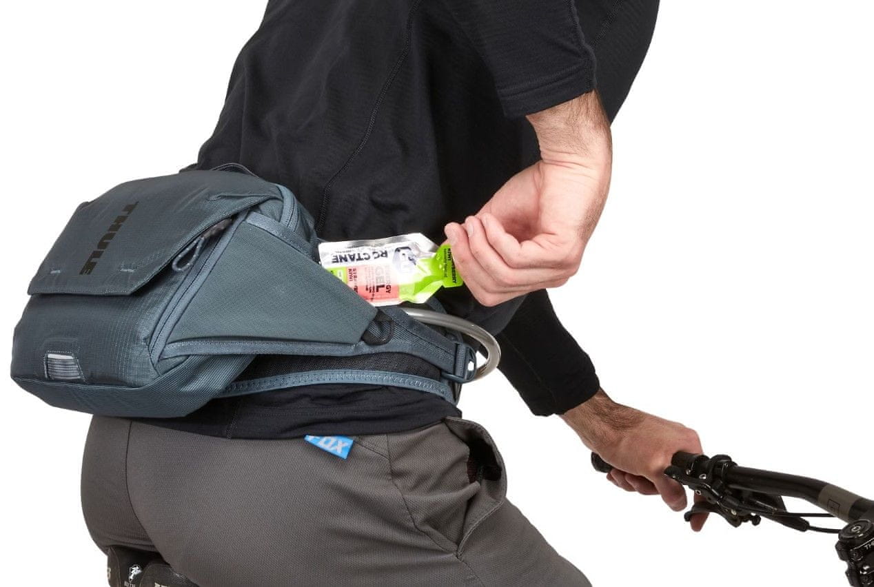 Thule Rail pojasna torbica uključuje spremnik za vodu od 1,5 l i cjevčicu za piće.