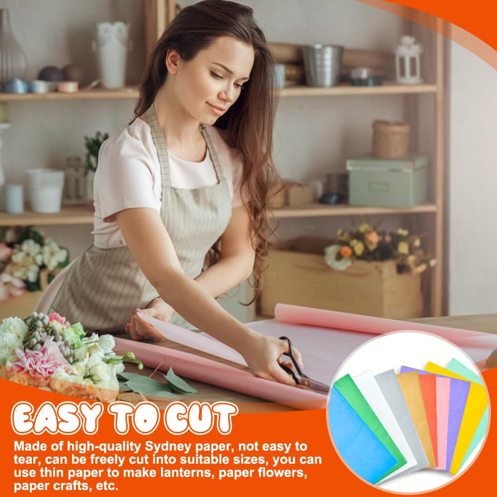 120 Listova Obojenog Tankog Papira 50×70 cm, 10 Boja za Pakiranje, Dekoracije i DIY Projekte