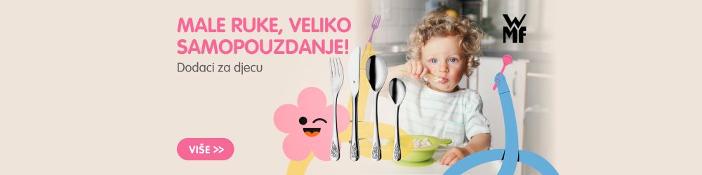 Komplet od 4 dijela sastoji se od dječjeg noža, velike i male dječje žlice i dječje vilice. Izrađen je od sjajnog nehrđajućeg čelika, tako da je otporan na hrđu, kiseline i ogrebotine te je potpuno siguran za upotrebu.