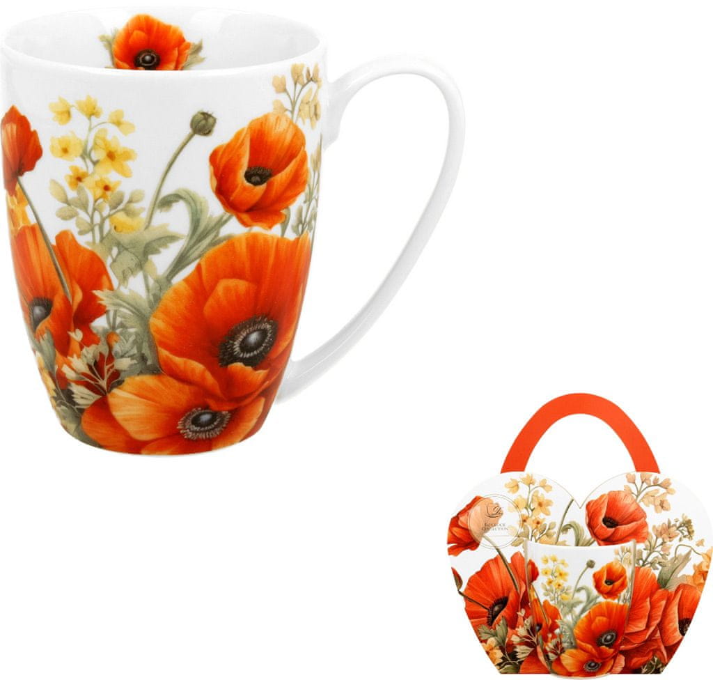 Elegantna šalica od porculana za kavu ili čaj. Popularni motiv cvjetova maka. Porculan, 360 ml. Ukrasno pakiranje, izuzetno prikladno za poklon