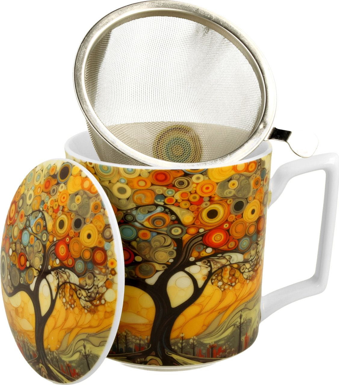 Elegantan komplet šalice, poklopca i cjedila za čaj. Moderan motiv Drvo. Porculan, 450 ml. Lijepo pakiranje, idealno za poklon.