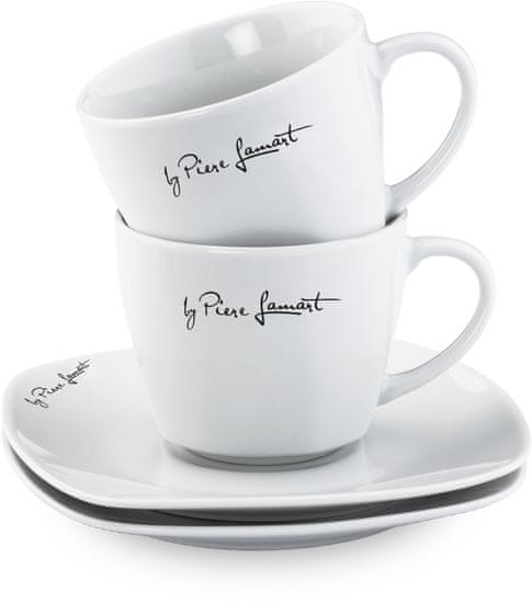 Komplet dvije šalice s tanjurićem i kapacitetom 190 ml elegantno nadopunjuje francuskog kuhara Pierrea Lamarta, poznatog po svojoj ljubaznosti i, prije svega, izvrsnoj kuhinji na bretanskoj obali. Cijeli opis