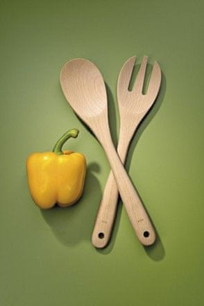 Dizajn pribora za salatu Calla izrađen od bukovog drva stvara prirodan osjećaj. Kombinacija svježe salate i održivih posluživača za salatu savršeno se slaže. Zahvaljujući maloj rupi na dršci, drveni.