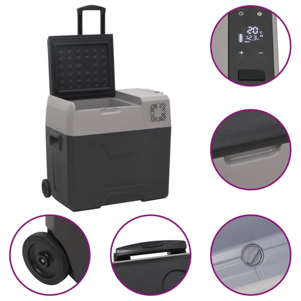 Vidaxl Prijenosni hladnjak s kotačima i adapterom crno-sivi 30 L PP