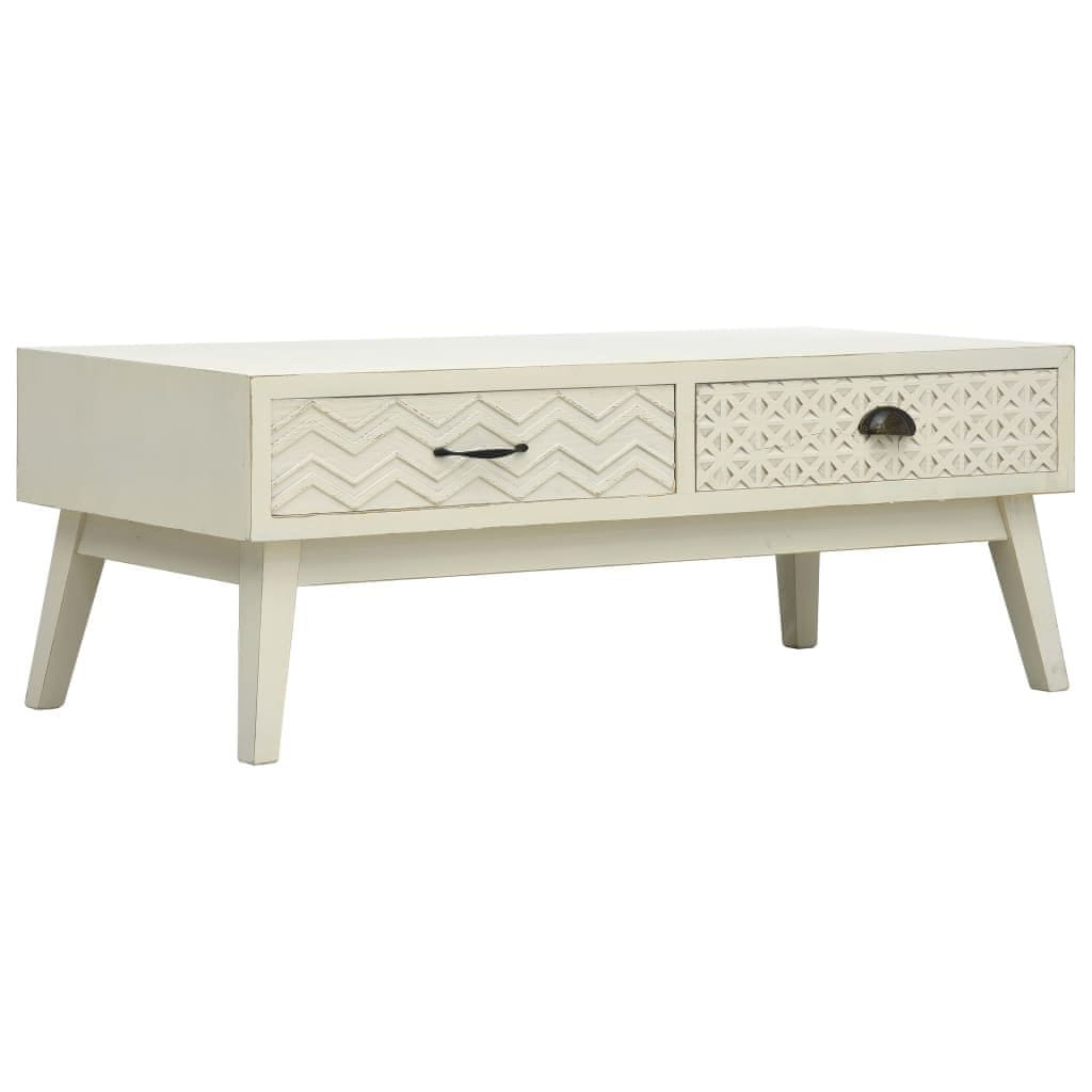 Vidaxl Stolić za kavu s 2 izrezbarene ladice sivi 110x50x40 cm drveni