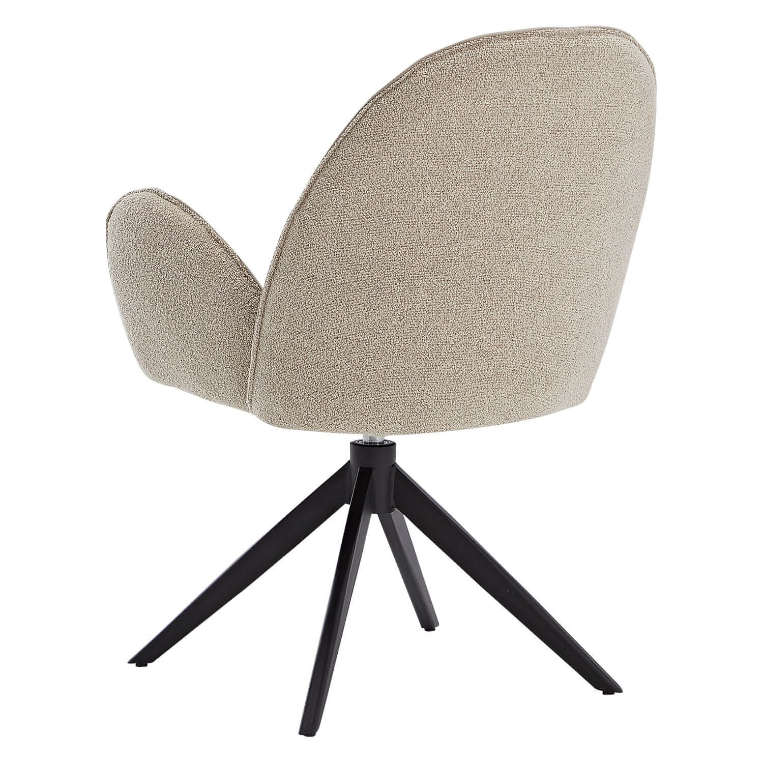 Set od 2 modernih tapeciranih blagovaonskih stolica u krem boji Kombinacija tkanine visokokvalitetnog boucléa i lako održive umjetne kože Udobno sjedalo s funkcijom okretanja 360° i automatskim povratom Udobni nasloni za ruke i naslon za leđa Stabilna konstrukcija s čvrstim crnim metalnim nogama Protuklizne i pogodne za pod Jednostavna montaža Presvlake u bež bouclé tkanini i umjetnoj koži Tkanine izrađene od 100% poliestera Noge stolica izrađene od željeza s crnim praškastim premazom Punjenje od pjene i poliesterskih vlakana Ukupne dimenzije po stolici (Š x V x D): 60 × 90 × 59 cm Širina sjedala: 41 cm Visina sjedala: 49 cm Dubina sjedala: 47 cm Visina naslona: 48 cm Visina naslona za ruke: cca 67 cm Boja: Bež Tip pakiranja: Set od 2 Namijenjeno za: Odrasle Materijal: Tkanina – Poliester S naslonima za ruke