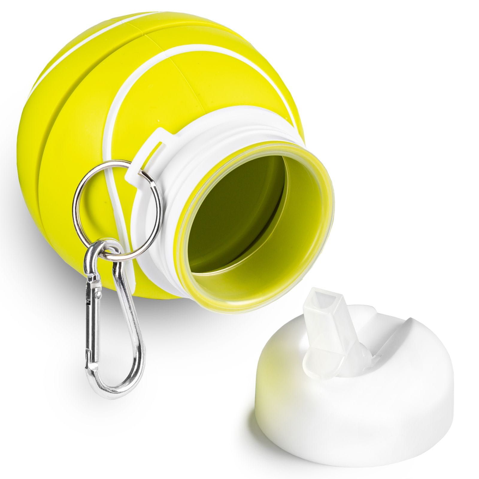 Sklopiva silikonska boca u obliku teniske loptice savršena je za sve ljubitelje tenisa. Predstavlja izvrsno rješenje za hladne napitke, bez obzira jeste li profesionalni igrač ili rekreativni sportaš. Boca je fleksibilna i može se nakon upotrebe sklopiti u nekoliko sekundi, što omogućuje da zauzima minimalno prostora. Izrađena je od visokokvalitetnog silikona za hranu, koji je siguran, netoksičan i ne upija mirise.