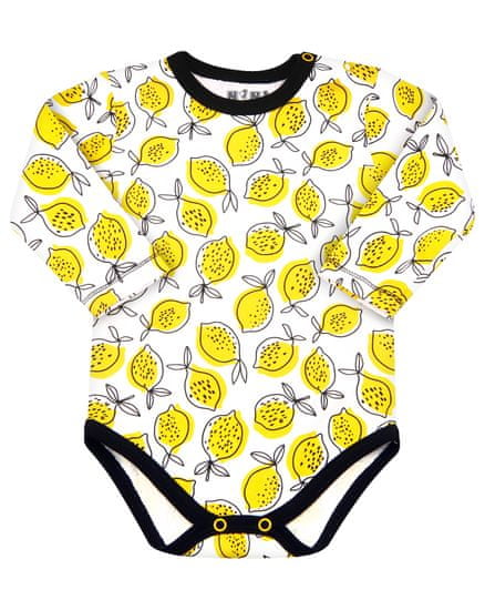 Dječji bodi s dugim rukavima od marke NINI oduševit će svojim svježim dizajnom i slike limuna. Jednostavno ga je pričvrstiti žutim gumbima između nogu, što djetetu donosi visoku udobnost nošenja. Cijeli opis