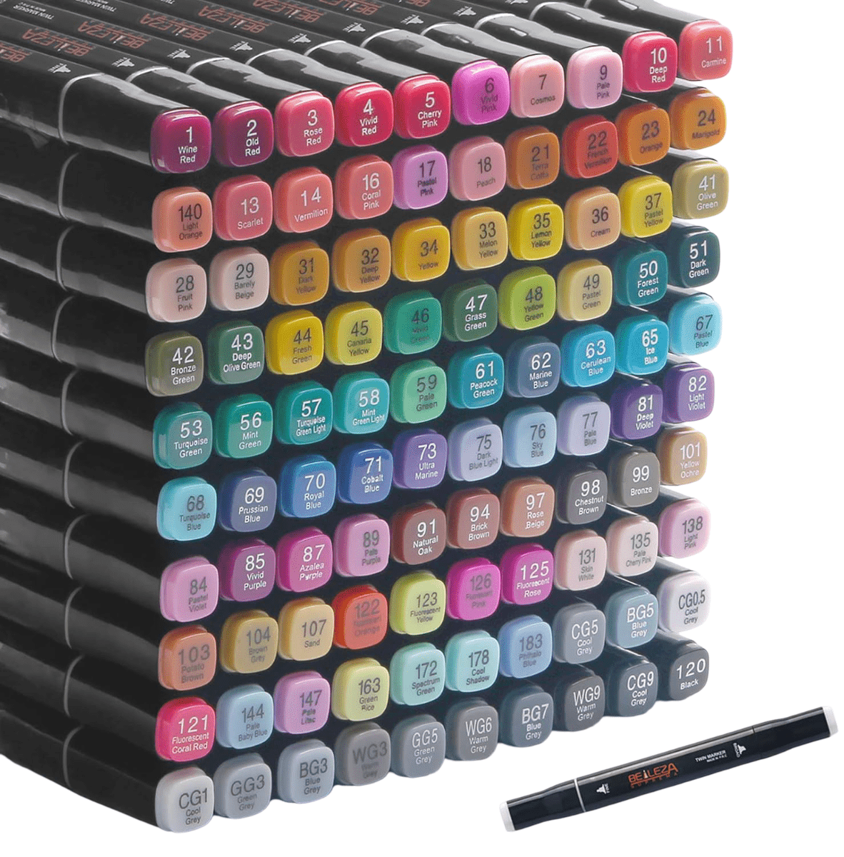 - Red i mobilnost: Svi markeri su složeni u stabilne stalke unutar elegantne torbe, što olakšava odabir odgovarajuće boje i nošenje cijelog seta na različite lokacije.