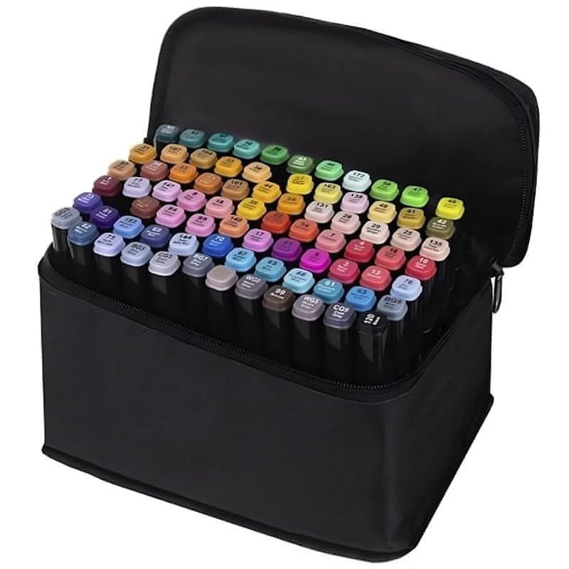 Dvostrani flomasteri intenzivnih boja potiču vašu kreativnost i potiču na stvaranje. Paket sadrži do 80 alkoholnih markera koji će biti izvrstan izbor bez obzira jeste li arhitekt, grafičar, iskusni ilustrator ili crtač koji tek započinje svoju umjetničku avanturu. Markeri ili markeri pogodni su za crtanje, pisanje, ilustriranje, skiciranje, sjenčanje, bojanje.