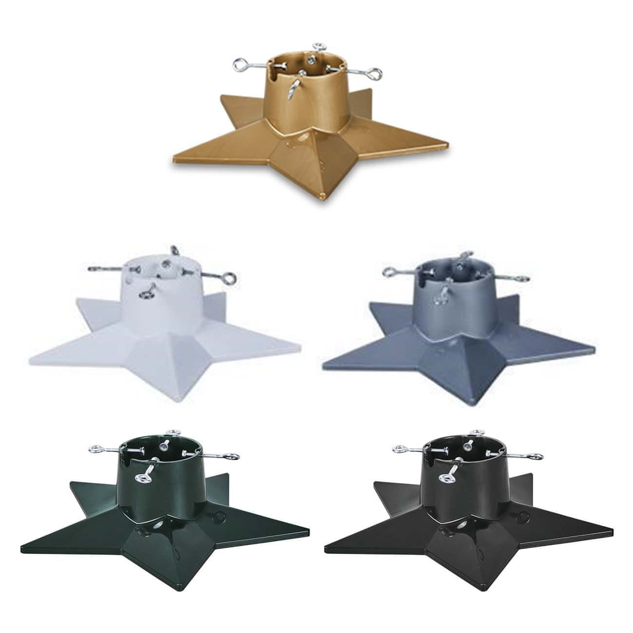 Plastični stalak za pravo ili umjetno božićno drvce. Stalak u obliku zvijezde. Veličina proizvoda: FI 55 × 16cm (v). Materijal: plastika. Boja na izbor: zelena, srebrna, crna, zlatna, bijela. Zapremnina spremnika za vodu: 1.8 lit. Prikladno za max visinu stabla: 2,3 m.