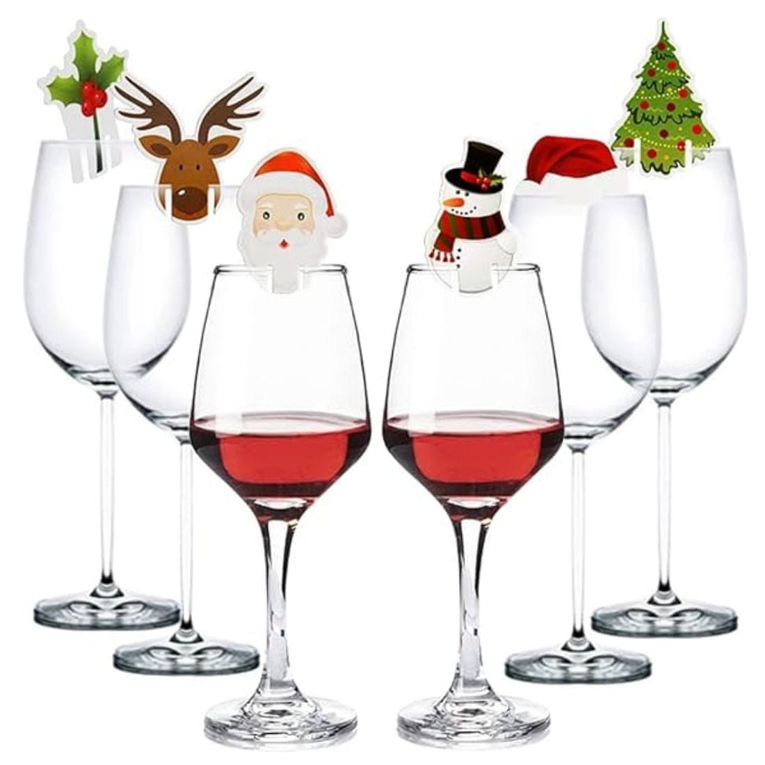 Razveselite svoje blagdanske čaše ovim hrabrim luckastim ukrasima u obliku kape Djeda Božićnjaka i jelena.