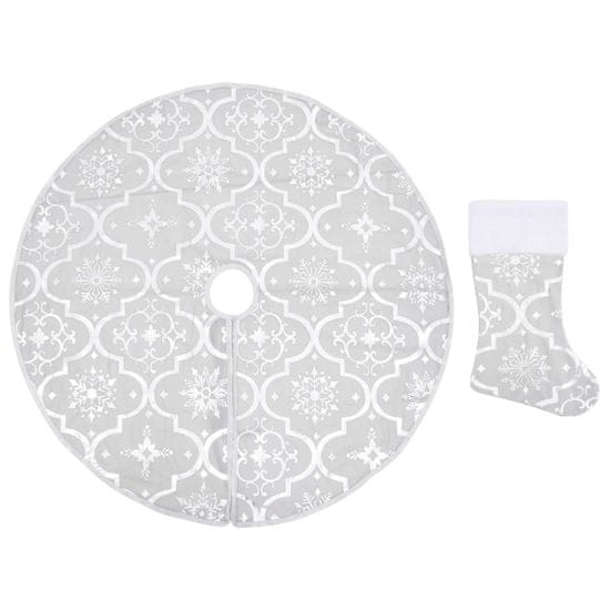 Vidaxl Luksuzna podloga za božićno drvce s čarapom bijela 90cm tkanina