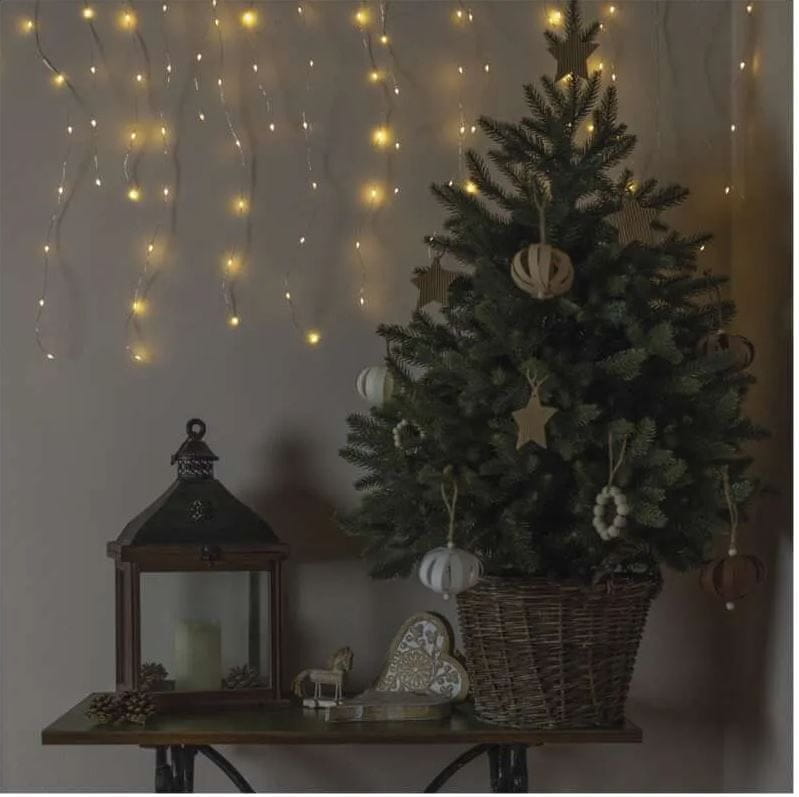 Svečana rasvjeta u obliku ledenih svijeća svijetli u ugodnoj toploj bijeloj boji. Za unutarnju i vanjsku upotrebu. Cijeli opis