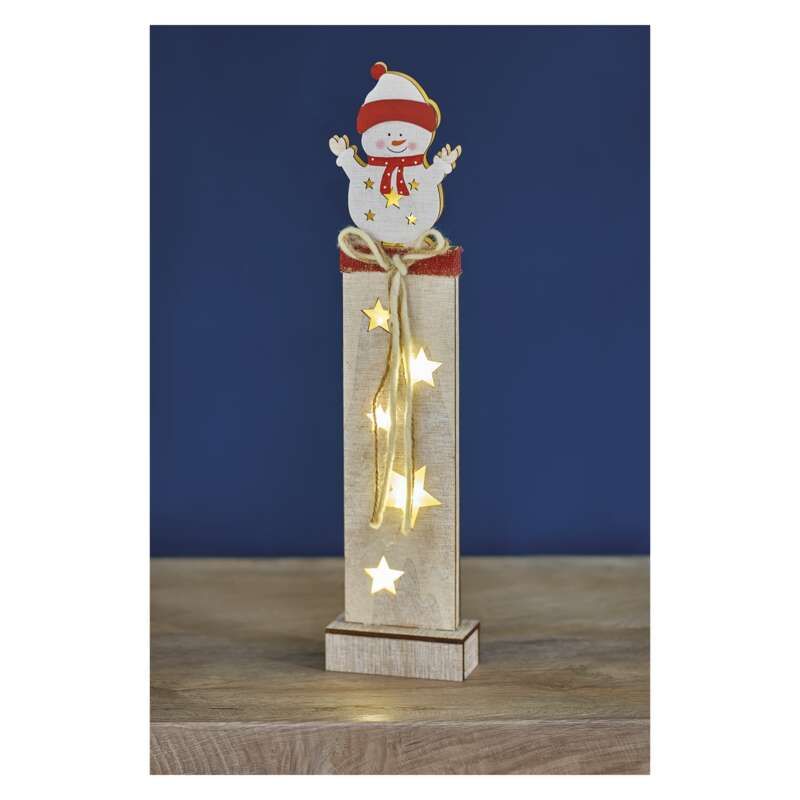 EMOS LED drveni ukras - Snjegović, 46 cm, 2x AA, unutarnji, toplo bijela, s mjeračem vremena