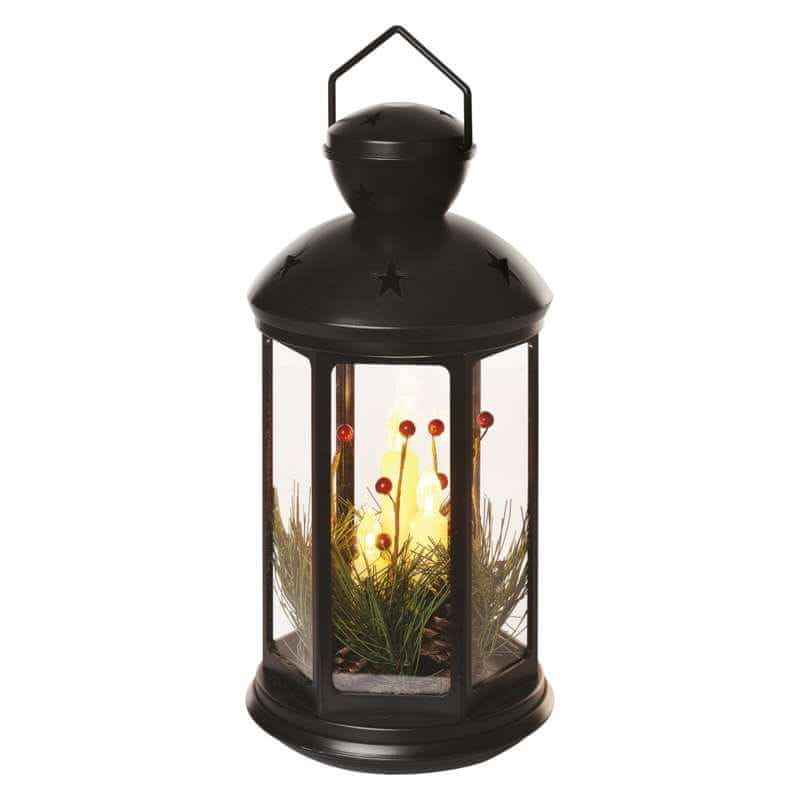 LED svjetlosna dekoracija, unutarnja, 35,5 cm, božićna svjetiljka sa svijećom, crna