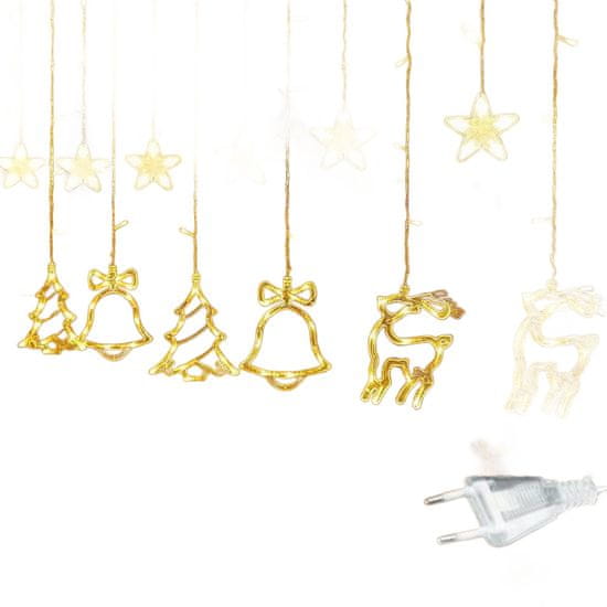 Nikcorp LED Božićne lampice svjetlosni lanac, 3,5m svjetlosna zavjesa s 12 ukrasa, 8 načina rada, za prozor, zid, unutarnja dekoracija