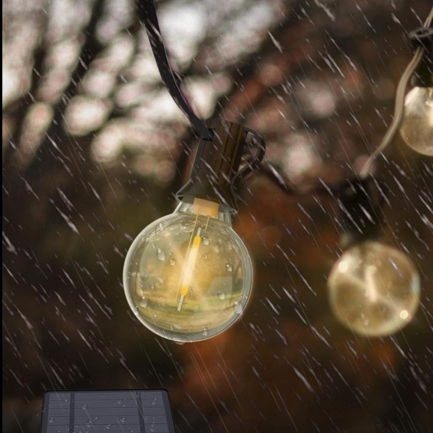 Stilske solarne LED svjetiljke duljine 18 metara predstavljaju idealnu svjetlosnu dekoraciju za vrt, balkon, terasu ili vanjske događaje. Zahvaljujući solarnom napajanju i ugrađenoj litij-ionskoj bateriji, automatski svijetle nakon sumraka, pružajući osvjetljenje u trajanju od 8 do 12 sati. Osam načina osvjetljenja omogućuje prilagodbu atmosfere svakoj prigodi, od romantičnih večeri do blagdanskih okupljanja. Topla boja svjetla (2700K) stvara ugodnu atmosferu, dok žarulje oblika G40 dodaju dašak elegancije. Ove svjetiljke kombiniraju funkcionalnost, estetiku i ekološko napajanje, savršene za dekoraciju vanjskih prostora, stvarajući jedinstveni ugođaj bez potrebe za električnom energijom. Idealne su za svaku prigodu, od svakodnevnog opuštanja do svečanih proslava.