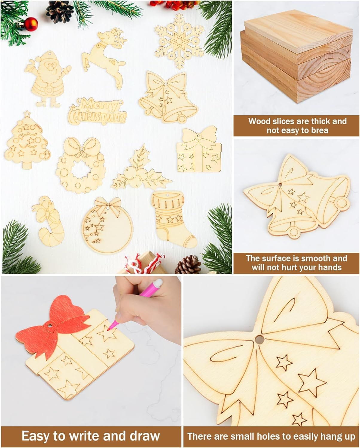 Ključne Prednosti i Prodajne Točke- Visokokvalitetno prirodno drvo s glatkom površinom: Osigurava trajnost i prikladnu podlogu za ukrašavanje.