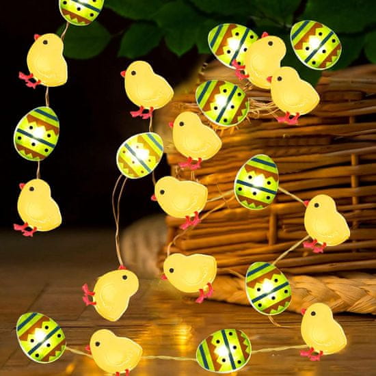 Nikcorp Uskrsna girlanda LED s pisanicama i pilićima, svjetlosni lanac za dekoraciju, 30 lampica, toplo svjetlo, 3 m